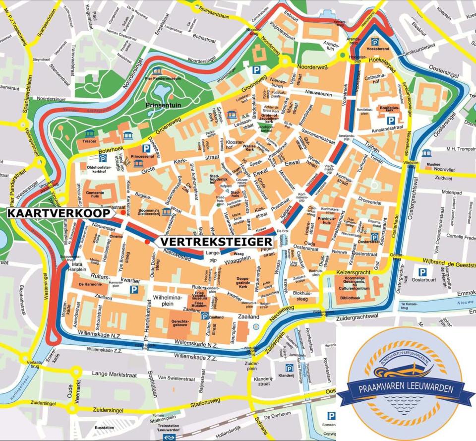 Deze, herkenbaar aan de gele vlag, is aan de Nieuwestad 72 t.h.v. Luxen Intersport. Een kaartje voor een rondvaart kunt u kopen in onze Praamvaarwinkel aan de Kleine Kerkstraat 5.